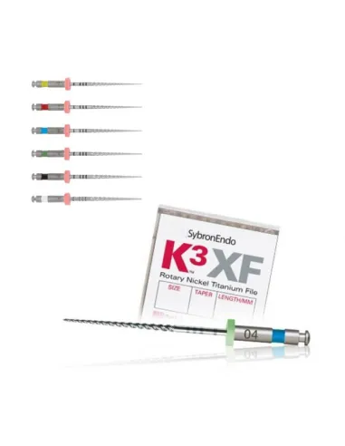 Las limas K3 XF de Kerr son un sistema de limas rotatorias Ni-Ti que ofrecen las mismas características de autocentrado y seguridad del sistema K3 original.
