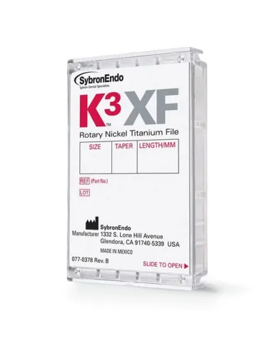 Las limas K3 XF de Kerr son un sistema de limas endodónticas Ni-Ti que proporciona las mismas características de autocentrado y seguridad del sistema K3 original.