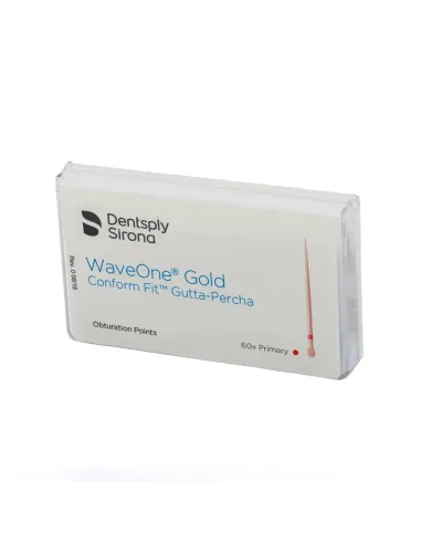 Las puntas de gutapercha WaveOne Gold con tecnología Conform Fit están diseñadas para que coincidan con las formas precisas creadas por los instrumentos del sistema WaveOne Gold de Dentsply Sirona.