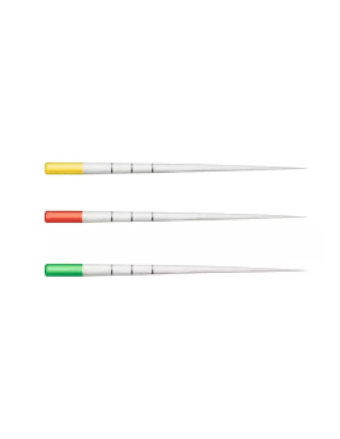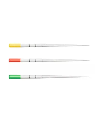 Puntas de papel absorbentes codificadas por colores para facilitar la identificación.