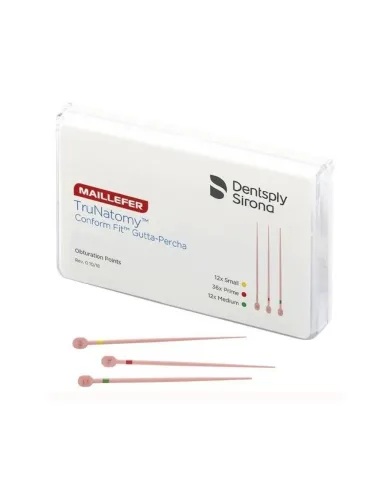 Las puntas de gutapercha TruNatomy Conform Fit de Mailler forman parte del sistema TruNAtomy, y se adaptan a los diámetros y conicidades creadas por sus limas rotatorias.