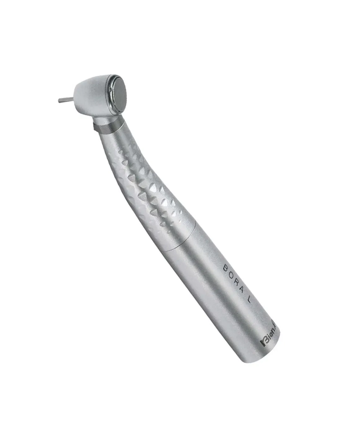 La robusta y segura turbina Bora L con luz posee rodamientos de bolas de cerámica Bien-Air que la hace más resistente al desgaste, consiguiendo prolongar su vida útil, a la vez, que disminuyendo su nivel de ruido acústico.