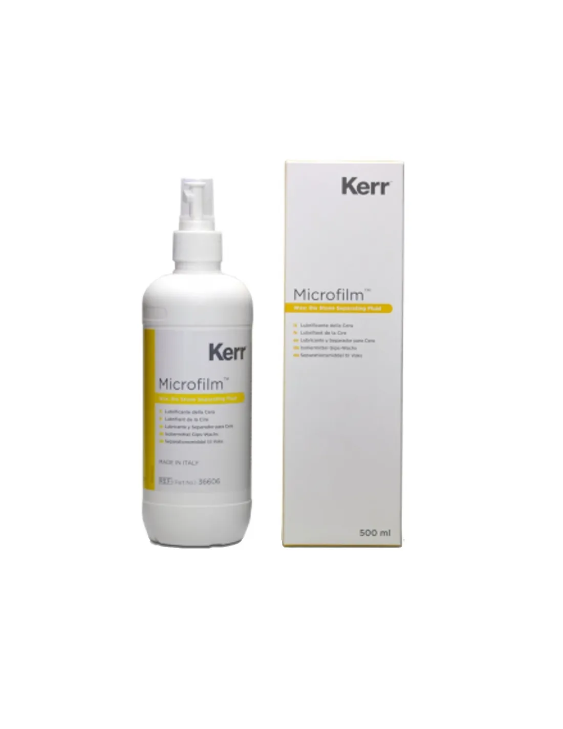 Microfilm de Kerr es un lubricante, aislante, de laboratorio que actua como separador entre la cera y la escayola.