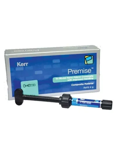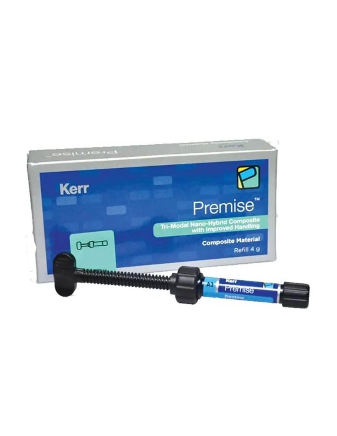 Premise de Kerr Dental es un composite restaurador trimodal con nanopartículas con 3 rellenos y un 84% de carga.
