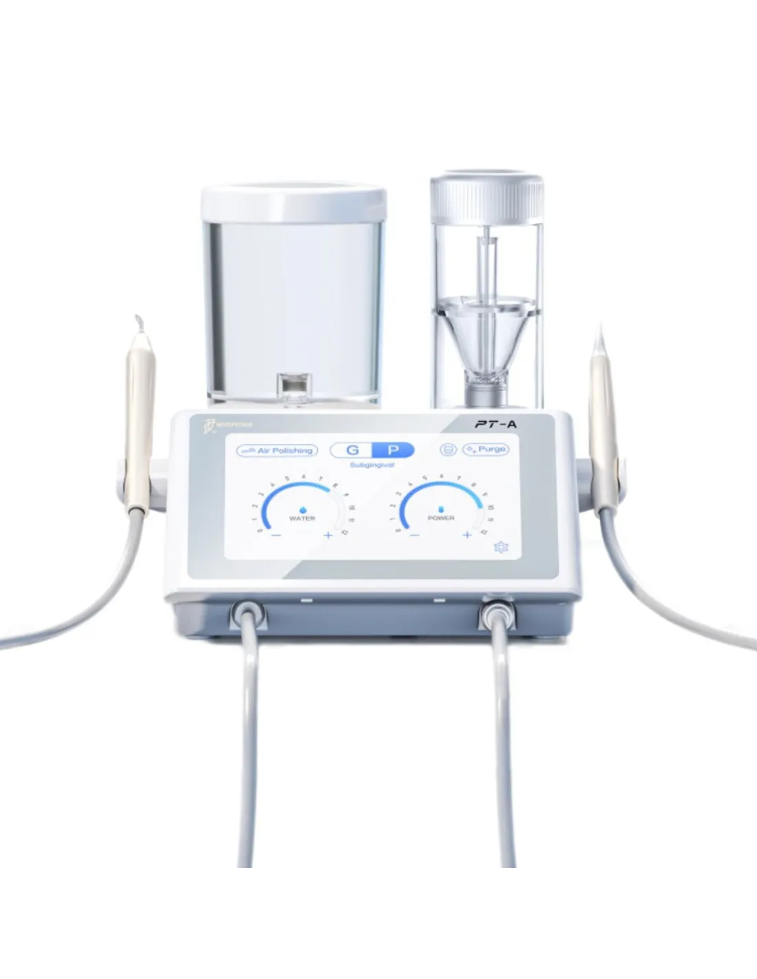 PT-A de Woodpecker es la solución combinada y completa para una profilaxis perfecta ya que es un aparato de ultrasonidos con aeropulidor.