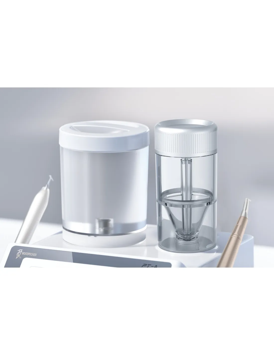 El limpiador dental PT-A está equipado con 2 depósitos de 600ml y 1400ml, intercambiables, hechos en materiales anticorrosivos.