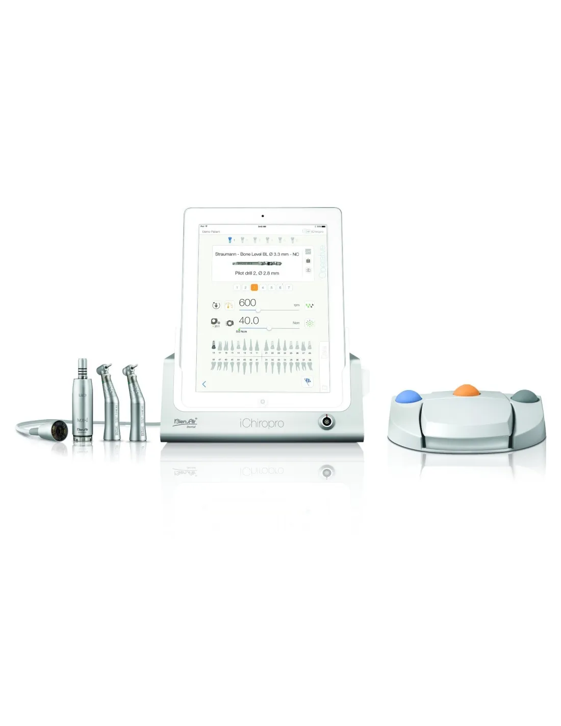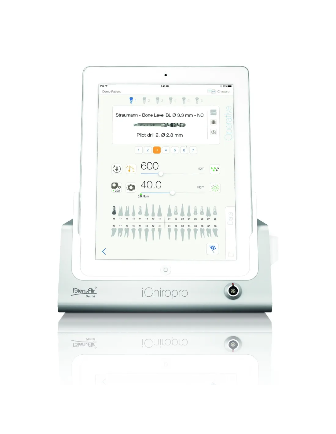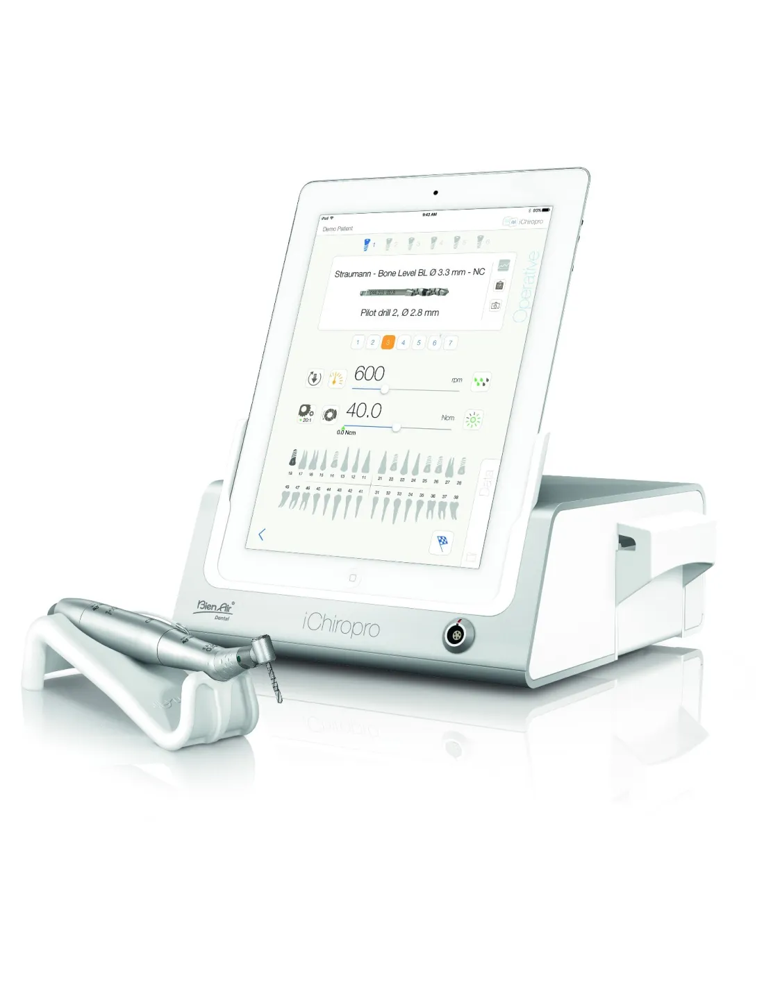 Ichiropro de Bien Air es un sistema de implantología y cirugía oral de alto rendimiento de gran facilidad de uso. Un asistente revolucionario controlado mediante una aplicación para iPad y equipado con instrumentos de alto rendimiento.