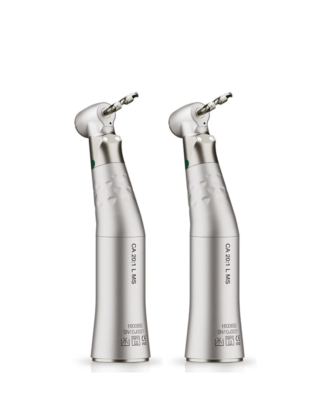 El contraángulo 20:1 L Micro Series (2 unidades) dispone de una cabeza muy pequeña, sistema de irrigación interna y sistema de LED doble para una iluminación uniforme, sin importar la velocidad de giro.