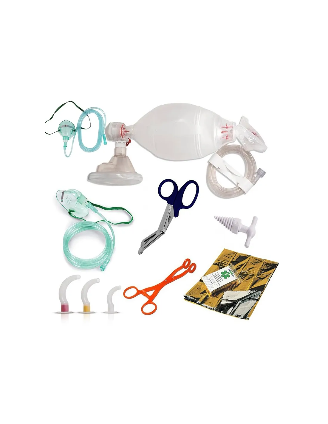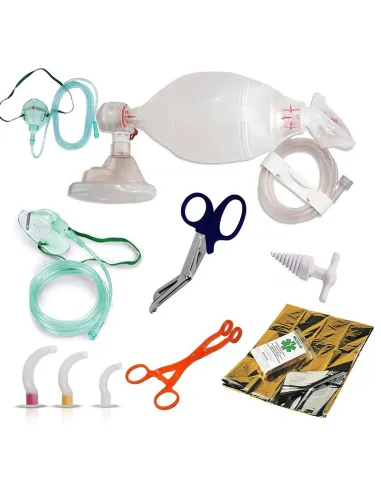 Cada uno de los elementos va embolsado por separado.Siendo estériles las cánulas, el resucitador y las mascarillas.