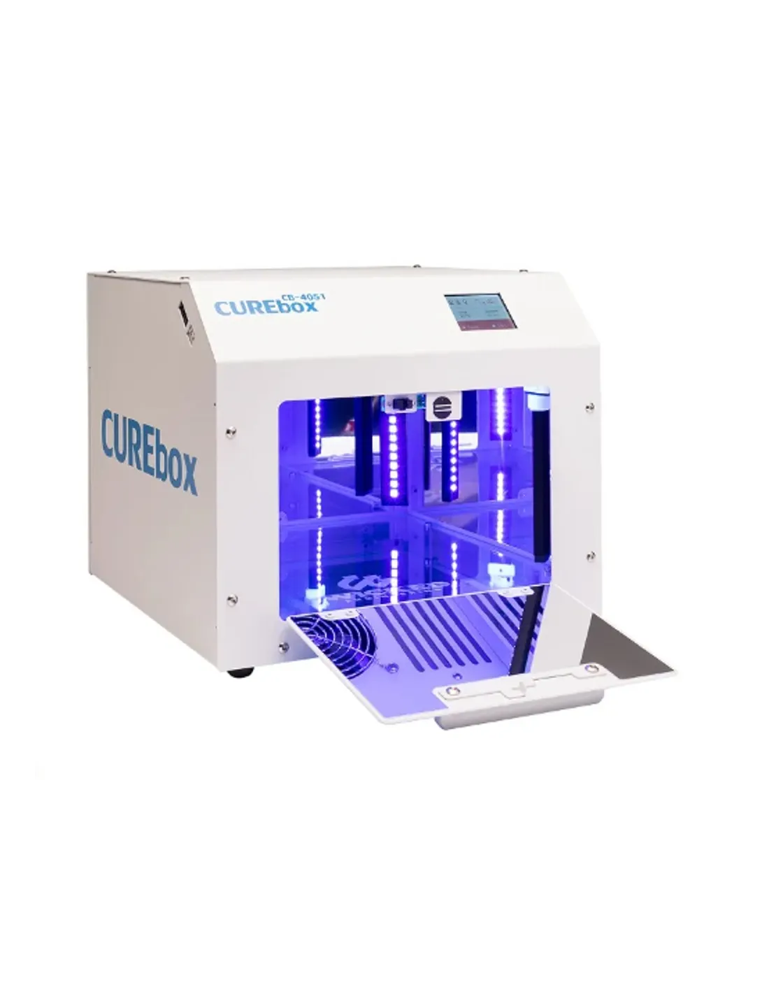 CureBox CB-4051 es un horno de polimerización de resina 3D de manejo sencillo e intuitivo gracias a su pantalla táctil (compatible con el uso de guantes) y a sus ajustes preestablecidos y personalizables.