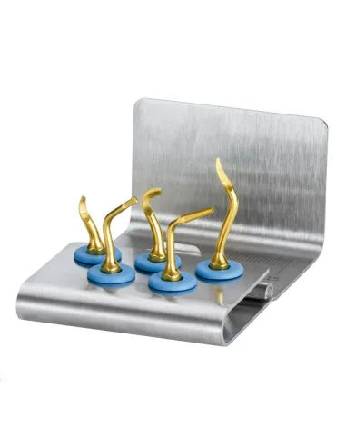 El kit de extracción del tercer molar de Mectron es un set de 5 puntas diseñadas para su utilización con el equipo de cirugía ósea PiezoSurgery de la misma marca.