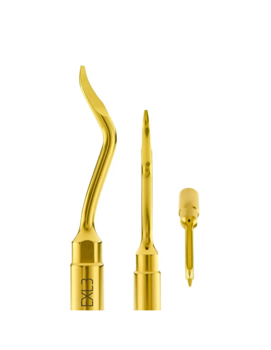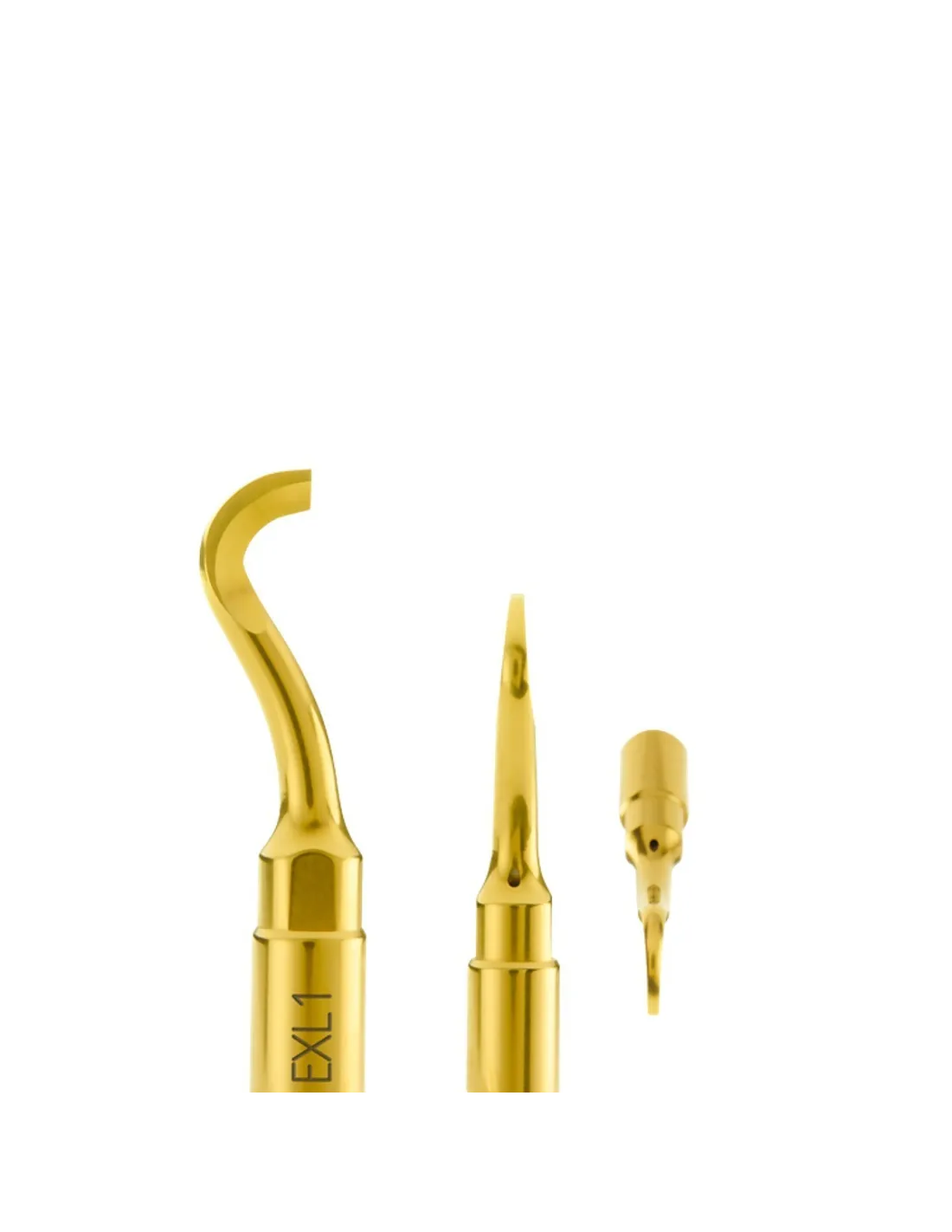 - El elevador EXL1 ejerce de palanca principal para la extracción del tercer molar con técnica piezoeléctrica. Versátil ya que puede efectuar una sola maniobra de dislocación y extracción de raíces al mismo tiempo.