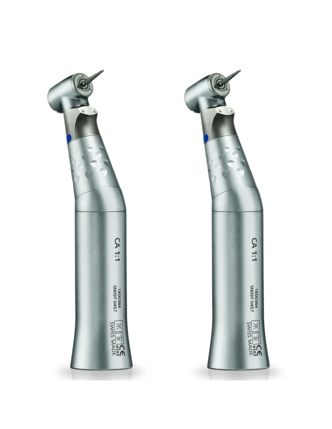 El contrángulo Bien-Air 1:1 LED con cabezal estándar es silencioso, nivel sonoro de 57 dBA y ofrece una velocidad máxima de 40.000 rpm, lo que hace que su uso sea confortable.