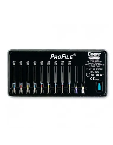 Las limas Profile están indicadas para la limpieza y preparación de las áreas del sistema de conductos radiculares, para la conformación del conducto, y más especialmente, para la técnica de Crown Down, ya que sus múltiples conicidades permiten tratar consecutivamente los 3 tercios del conducto.