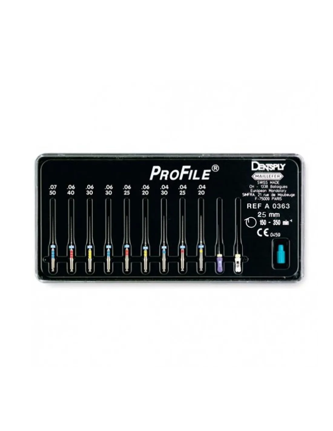 La lima Profile de Maillefer es un instrumento rotatorio fabricado con una aleación Níquel-Titanio. Su gran flexibilidad permite conformar el conducto delicadamente, sobre todo a nivel apical.