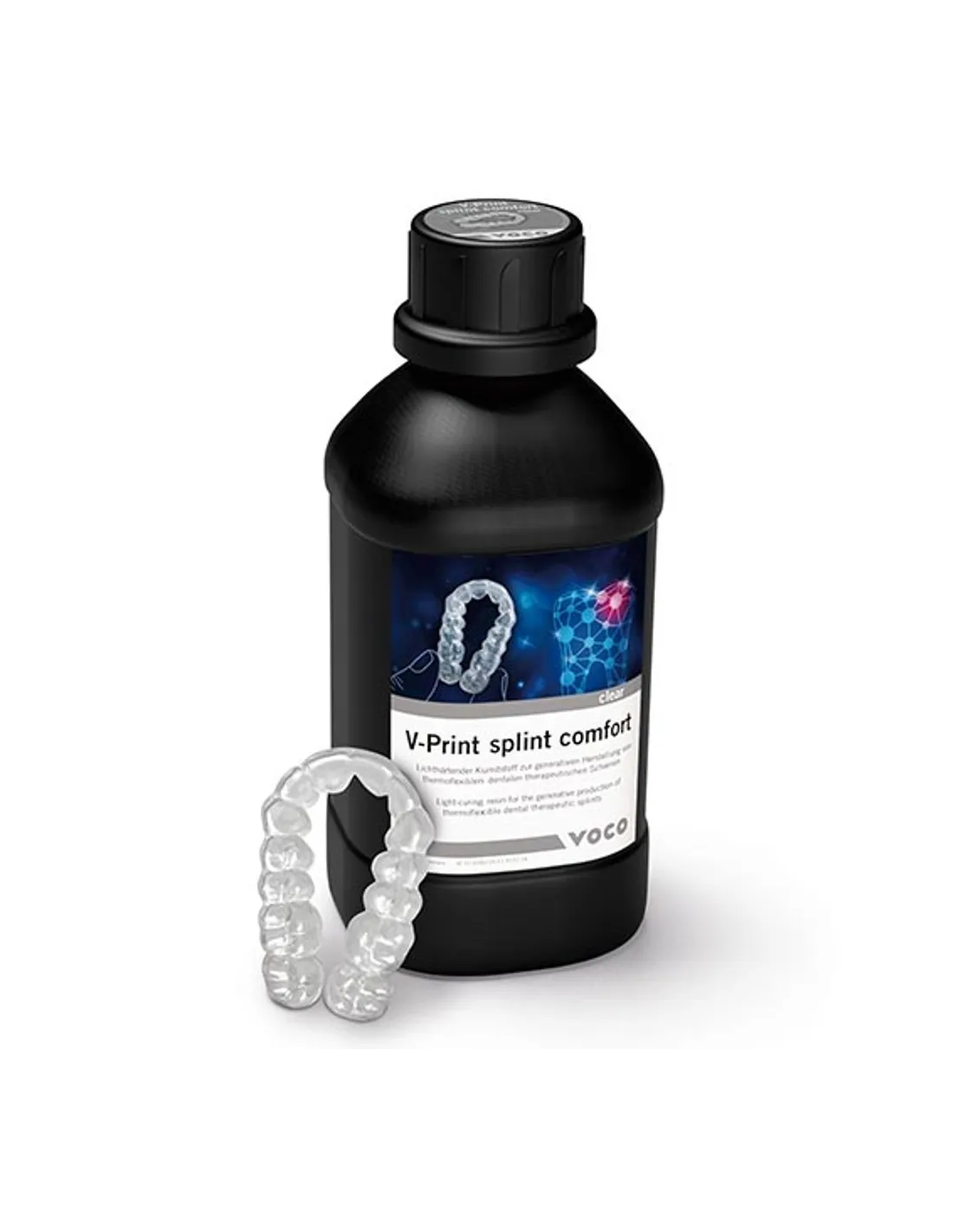 V-Print Splint Comfort Clear de Voco se presenta en botella de 1000g.