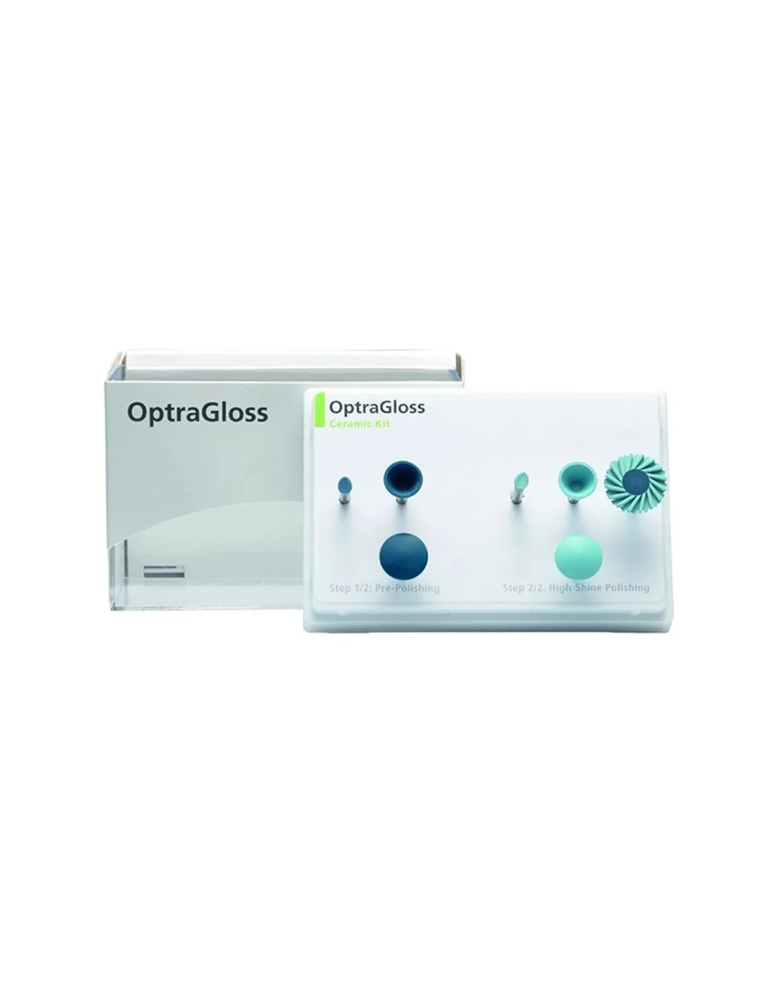 Los pulidores universales OptraGloss Ceramic Kit están indicados para pulido de restauraciones de cerámica de vidrio, cerámica feldespática y cerámica de óxido.