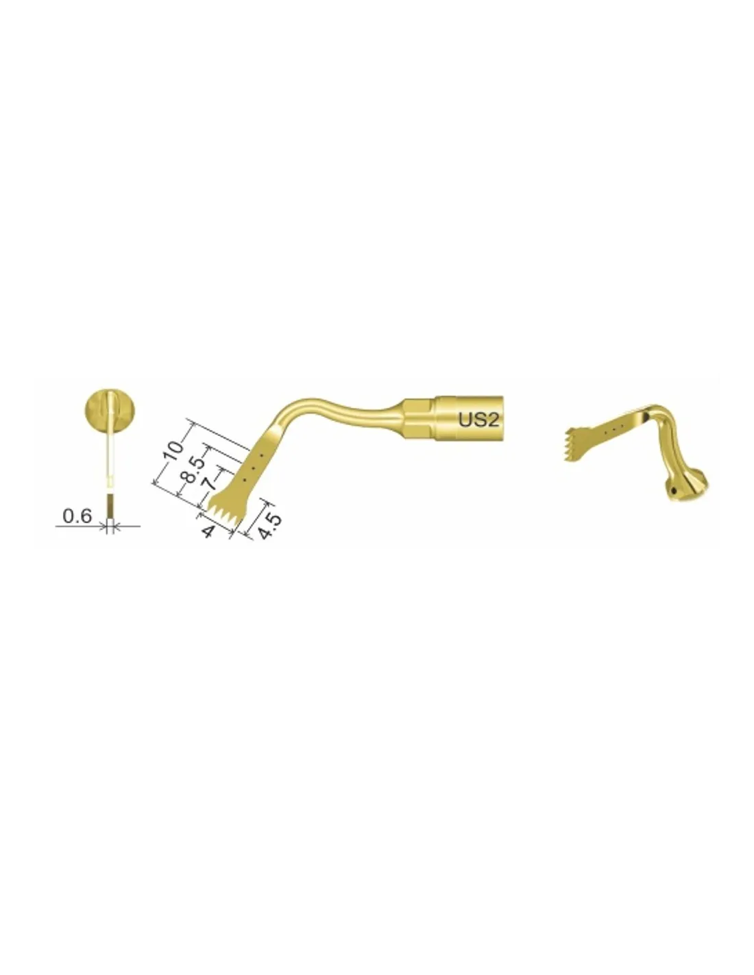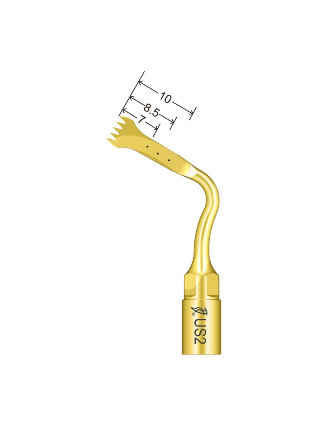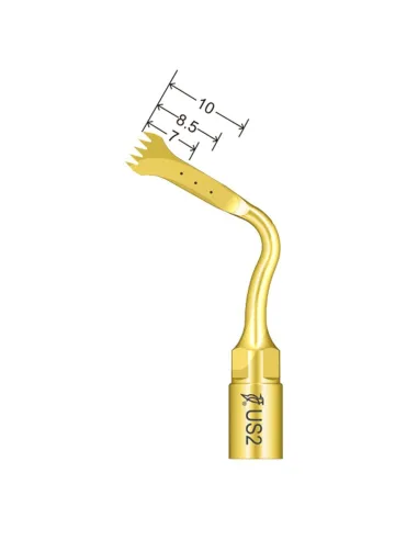 • Punta US2 para cortar hueso de forma precisa y eficaz con líneas de marcadores de 7 - 8,5 y 10mm.
