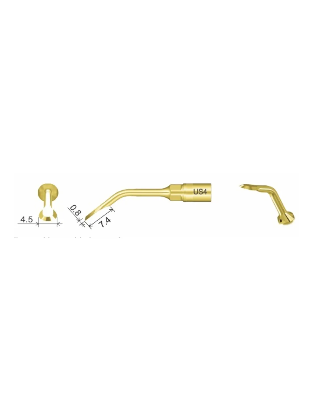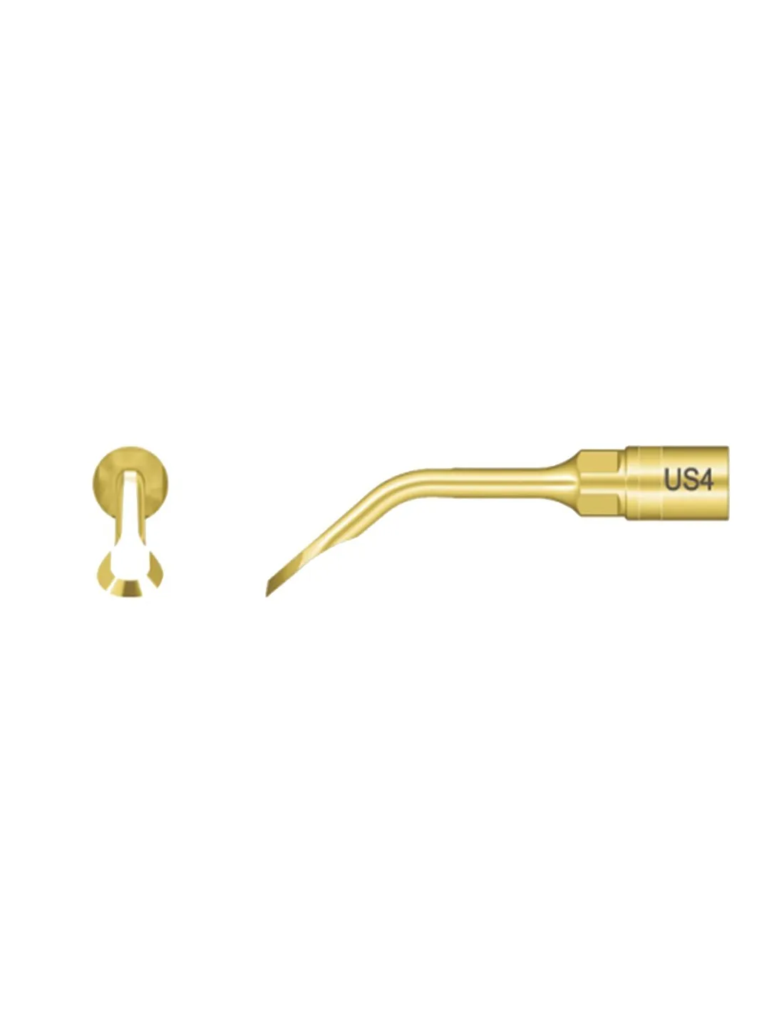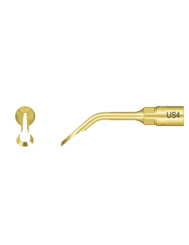 La punta cirugía US4 presenta una forma circular y está indicada para Osteoplastia ostectomía periodontal. Remodelación ósea y extracción de fragmentos óseos, recolección de hueso, eliminación de tejido inflamatorio (quistes, etc.)