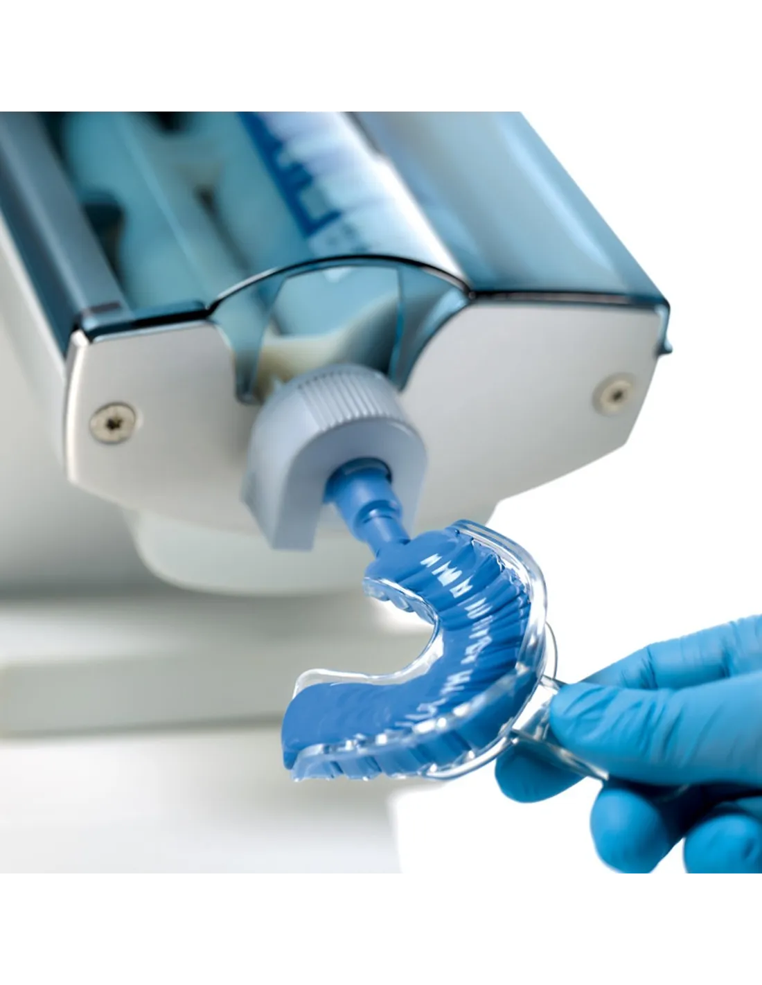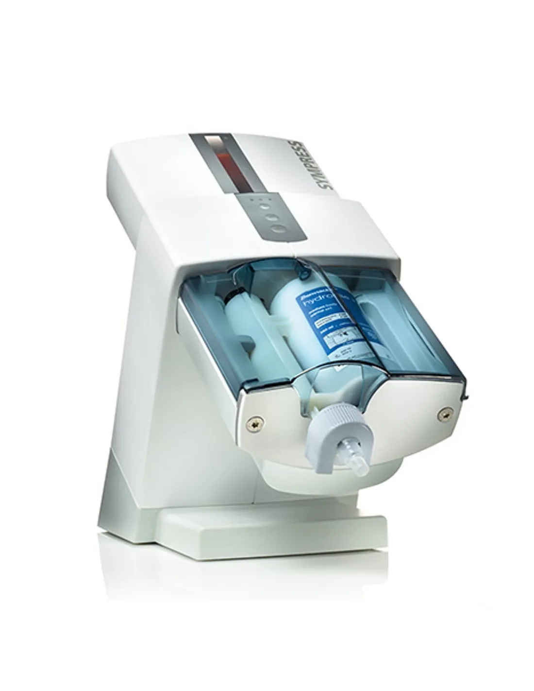 La dispensadora Sympress está indicada para sistemas de cartuchos de 380 ml y sistemas relacionados en proporción de mezcla de 5:1 (materiales de impresión en bolsas de aluminio o cartuchos grandes).