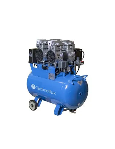 Compresor de aire 7002 de Technoflux tiene un calderín en horizontal de 50 litros de capacidad, con 2 cabezales (4 cilindros), y una potencia de 1,5 HP.