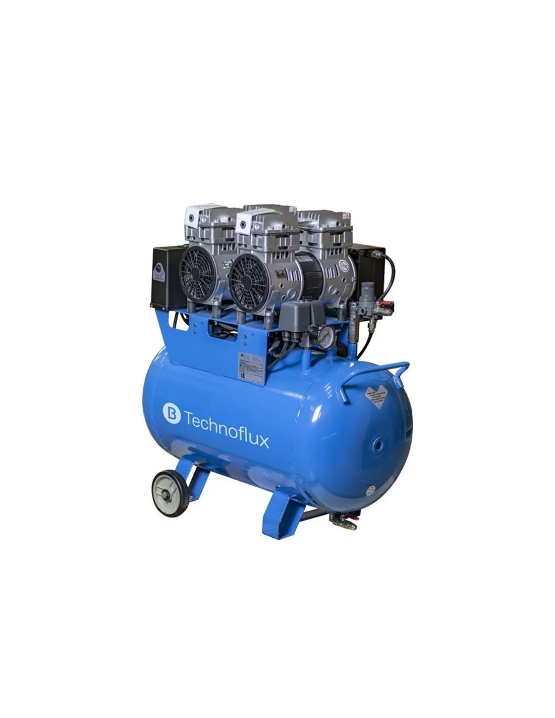 Se trata de un compresor de aire altamente silencioso, de baja vibración y libre de aceite, que incluye secador de aire.