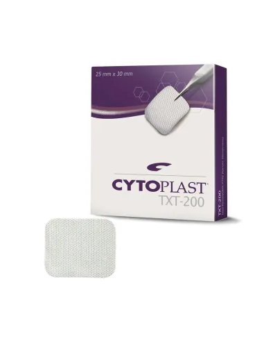 La membrana dental Cytoplast TXT-200 es un material implantable provisional para utilizar como barrera de creación de espacio en el tratamiento de defectos periodontales. Siendo perfecta para injertos de alvéolos e injertos donde el cierre primario no es posible y especialmente para defectos óseos que precisan de un efecto barrera prolongado, incluyendo preservaciones alveolares unitarias.