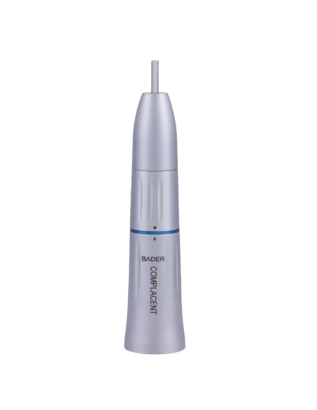 - Contra-ángulo COMPLACENT sin luz: Transmisión 1:1 Irrigación interna. Hasta 60000 rpm. Rodamientos cerámicos y cambio de fresa por botón. Nivel sonoro +- 65dB.