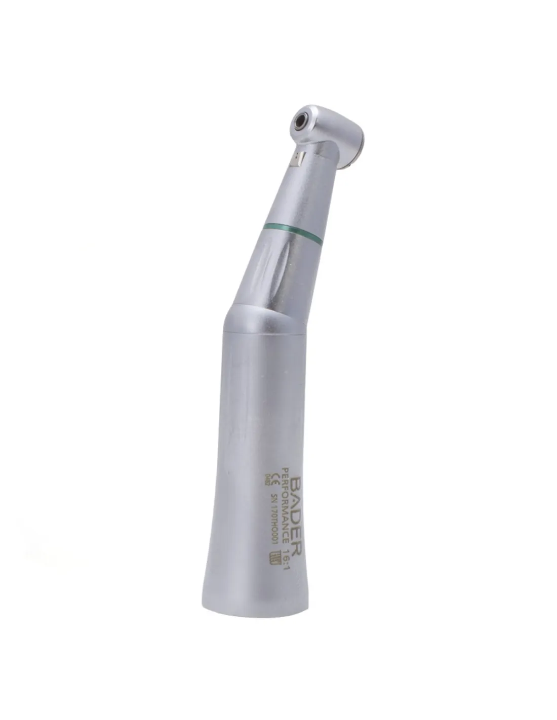 - Contra-ángulo reductor sin luz: Irrigación interna. Transmisión 16:1 RPM 22000-40000rpm. Rodamientos cerámicos y cambio de fresa por botón.
