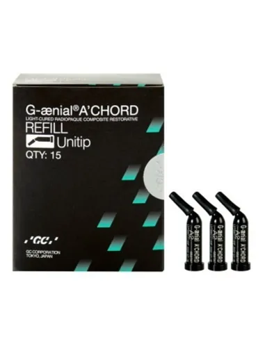 La combinación de sus revolucionarias tecnologías patentadas de GC: recubrimiento de silano de cobertura total (FSC) y CERASMART pulverizado de alto rendimiento (HPC) con los monómeros hace que G-aenial A'chord sea un composite con unas excelentes propiedades como: alta resistencia, bajo desgaste, retención de brillo, baja decoloración y excelente radiopacidad.