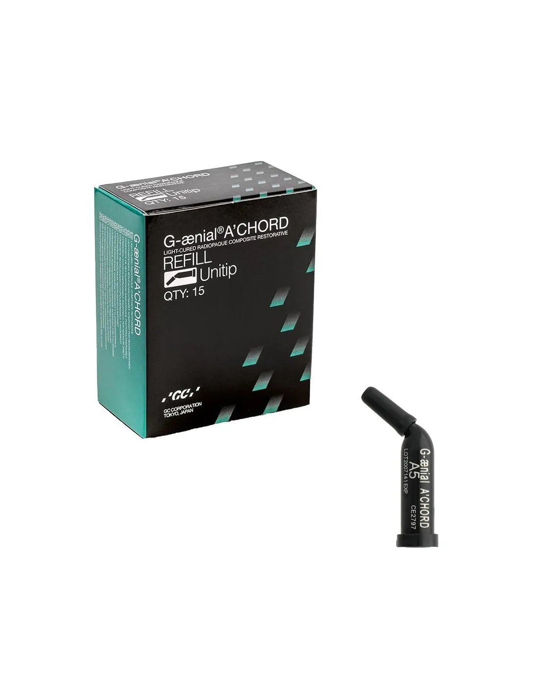 La combinación de sus revolucionarias tecnologías patentadas de GC: recubrimiento de silano de cobertura total (FSC) y CERASMART pulverizado de alto rendimiento (HPC) con los monómeros hace que G-aenial A'chord sea un composite con unas excelentes propiedades como: alta resistencia, bajo desgaste, retención de brillo, baja decoloración y excelente radiopacidad.