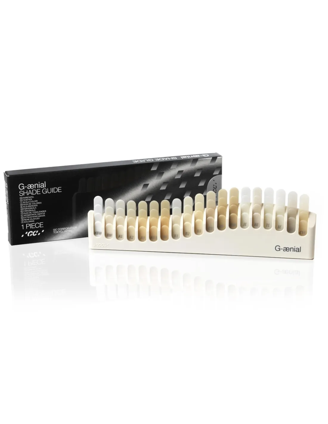 La guía de color Gaenial de GC es una guía de colorimetría dental que permite la toma sistemática y segura del color de los dientes.