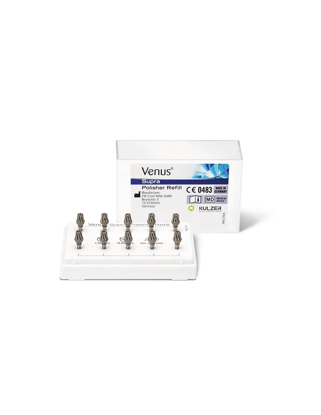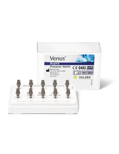 El envase de Venus Supra Pulidores Kulzer contiene 10 unidades, a elegir la forma.