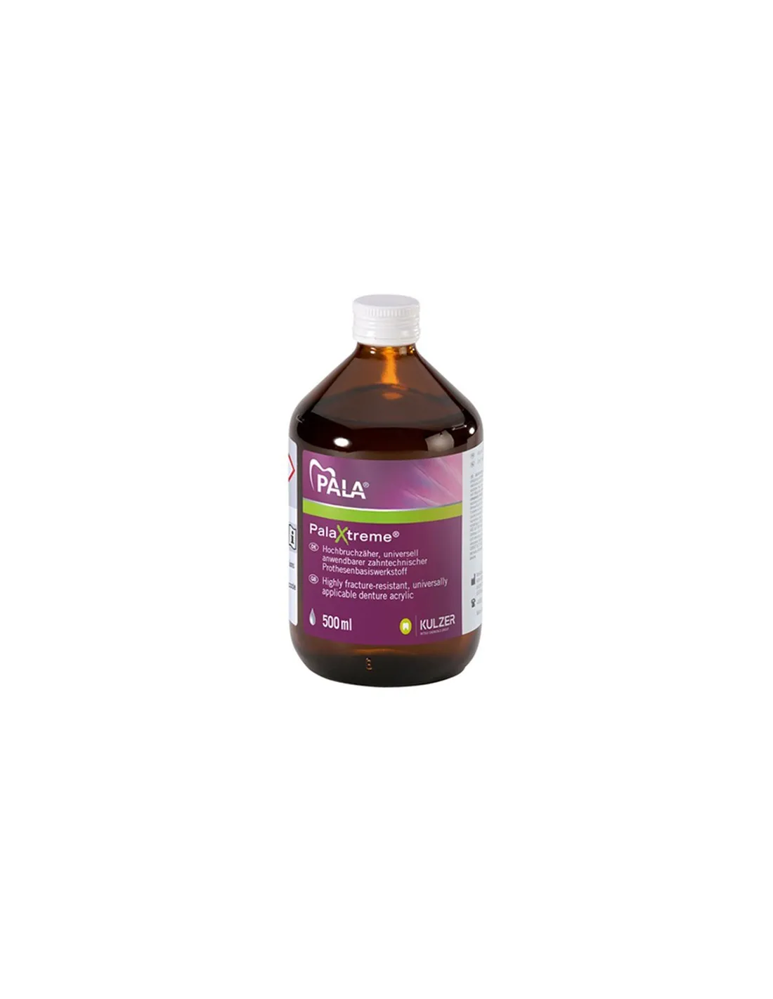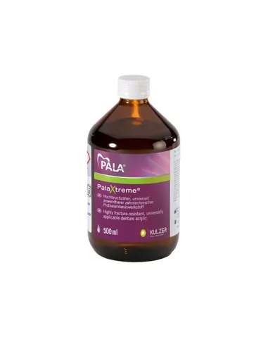 PalaXtreme de Kulzer es un material compuesto por polvo y líquido para formar resina acrílica autopolimerizable de alto impacto para prótesis sobre implantes.