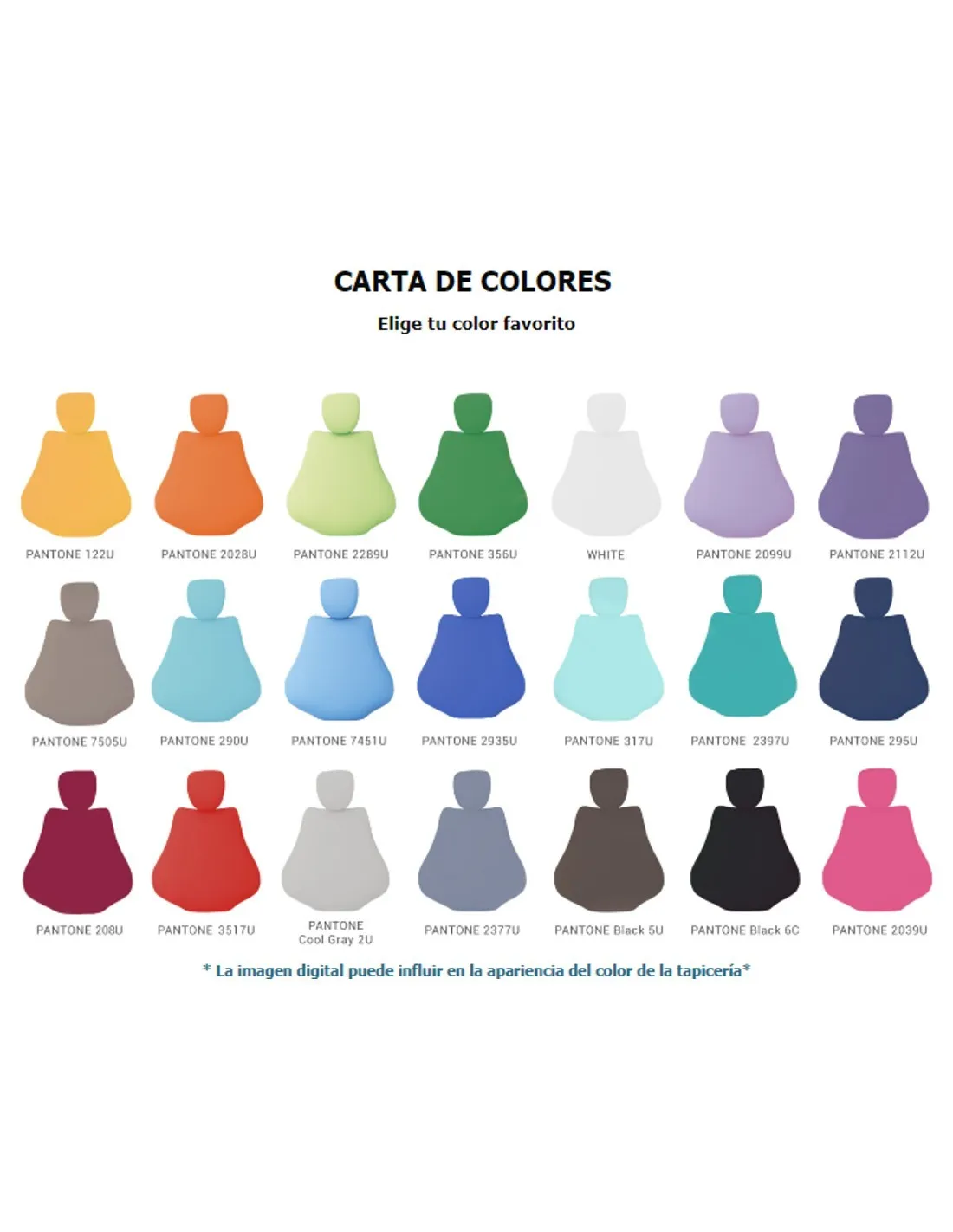 *Tapicería disponible en diferentes tonos. Ver imagen con la carta de colores.