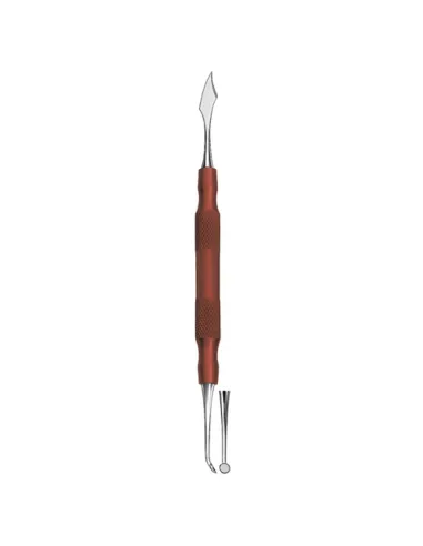 - Doble parte activa: cucharilla y espátula puntiaguda ligeramente curvada.