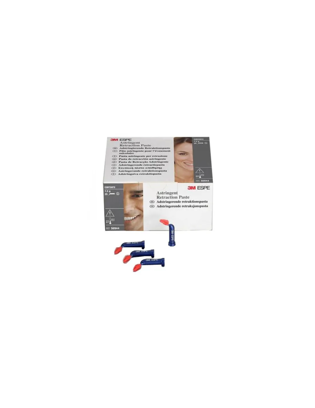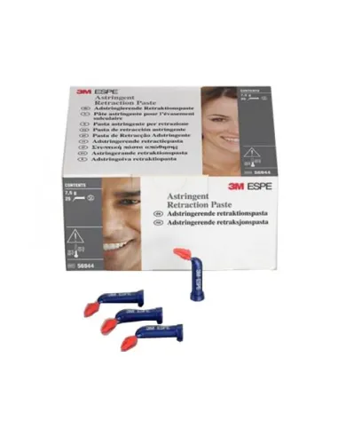 La pasta de retracción astringente de 3M ESPE está indicada para la retracción temporal del margen gingival, con el fin de proporcionar un surco seco cuando el tejido periódontal está sano. Indicado para toma de de impresiones, preparación de provisionales, realización de obturaciones de clase II y IV.