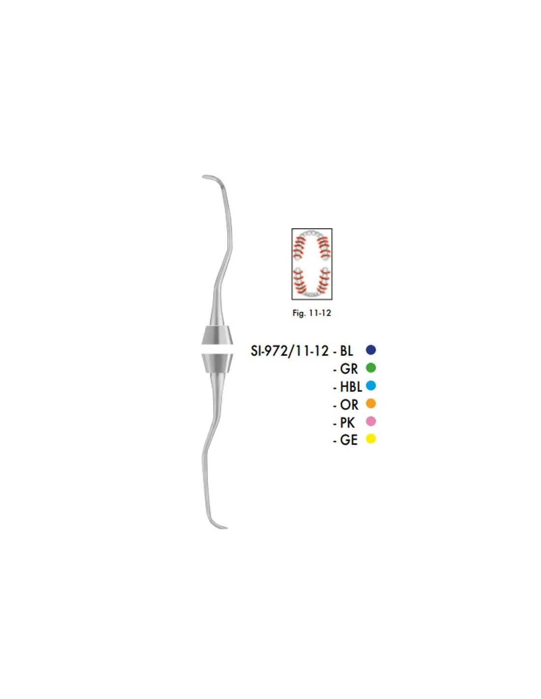 El instrumento dental SI972/11-12 de Carl Martin es una cureta Gracey 11-12 Mesial que se caracteriza por su doble angulación.