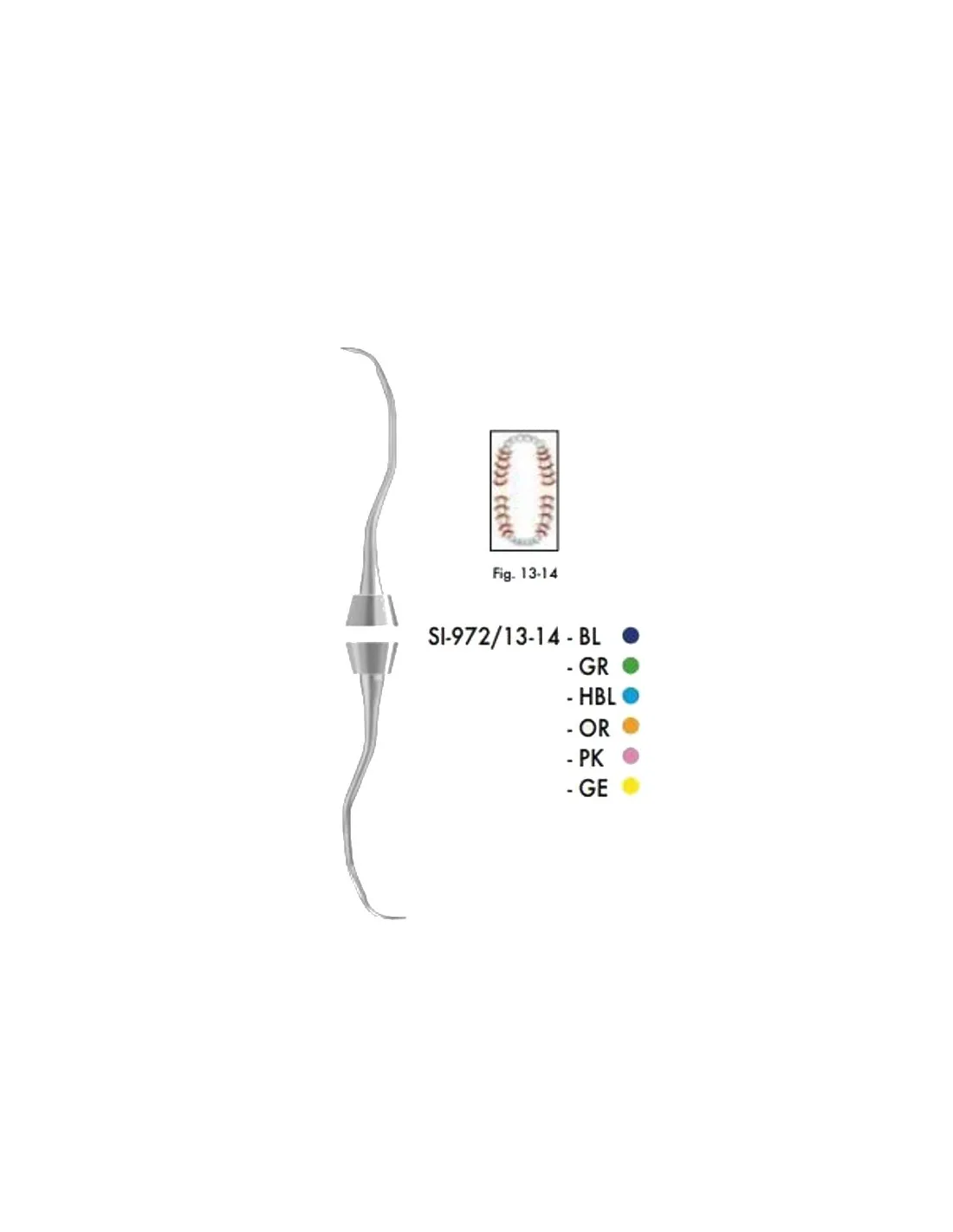 El instrumento dental SI972/13-14 de Carl Martin es una cureta Gracey 13-14 Distal que se caracteriza por su doble angulación.