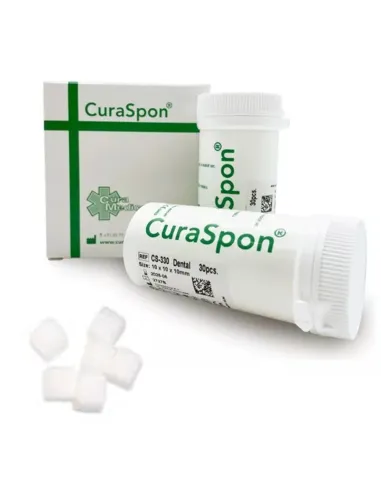 Por su tamaño, las esponjitas hemostátias CuraSpon Dental están especialmente indicadas para Odontología: alvéolos de extracción, llagas dentales (virales o sin infección), úlceras bucales, lechos suturados etc.
