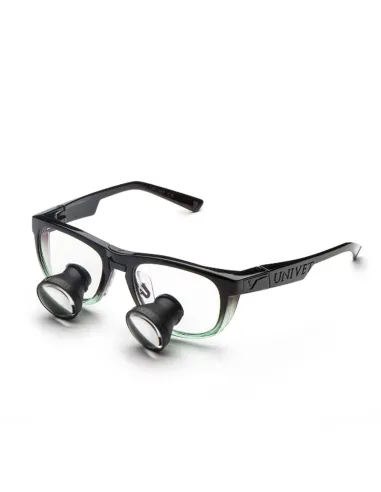 La lupa binocular Galileanas TTL Pro HD 3.0 x 350 LOOK de Univet para clínicas dentales ayudan a prevenir la fatiga y la tensión en hombros y cuello cuando se realizan trabajos de precisión visual.
