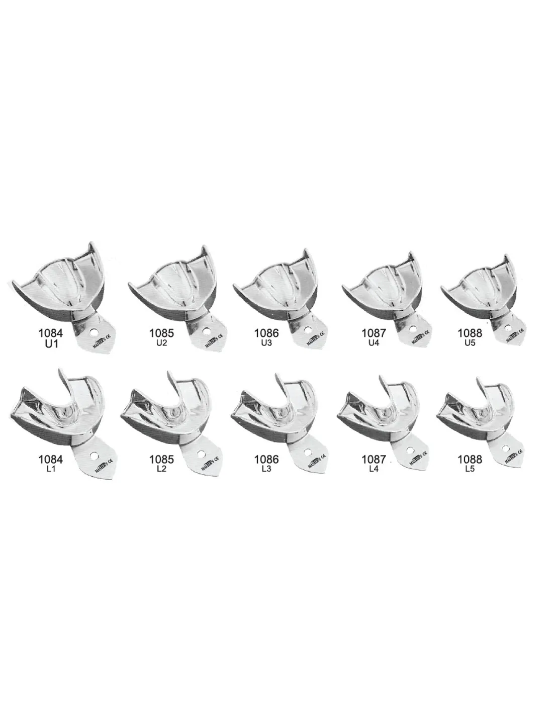 El juego de cubetas de Masters contiene 10 unidades en 5 diferentes tamaños para maxilar superior e inferior.