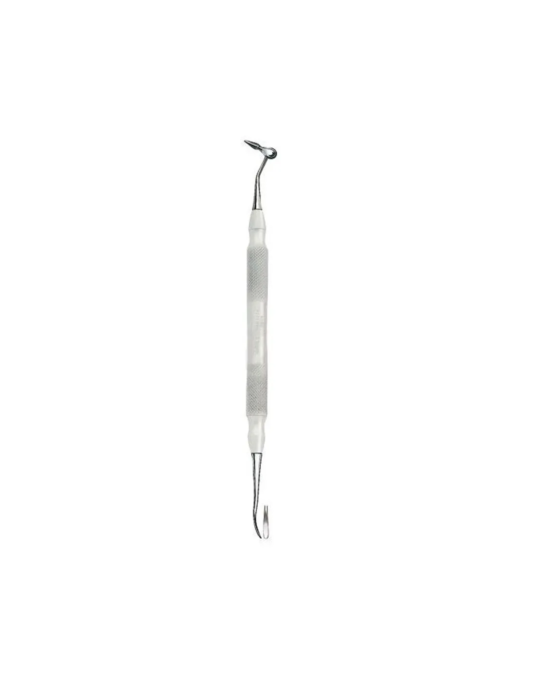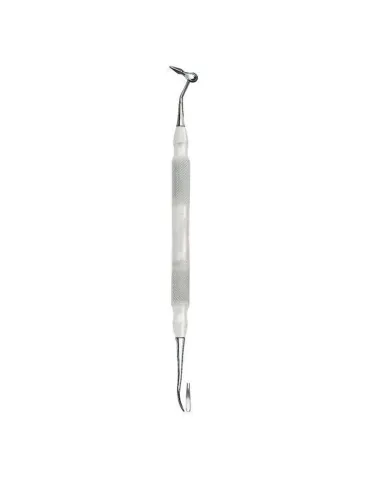 Consta de dos partes activas 1 acabada en punta y 1 espátula angulada pequeña.