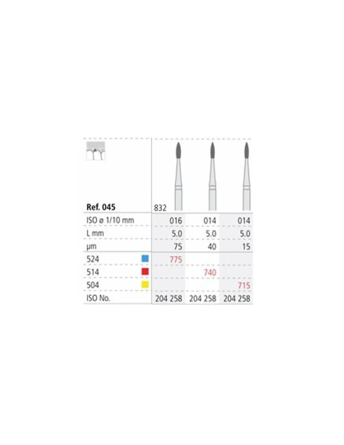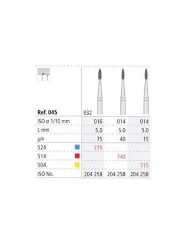 Con forma de lanza, la fresa 832 ISO 014 es una fresa diamante de grano fino, 40 µm, marca roja.