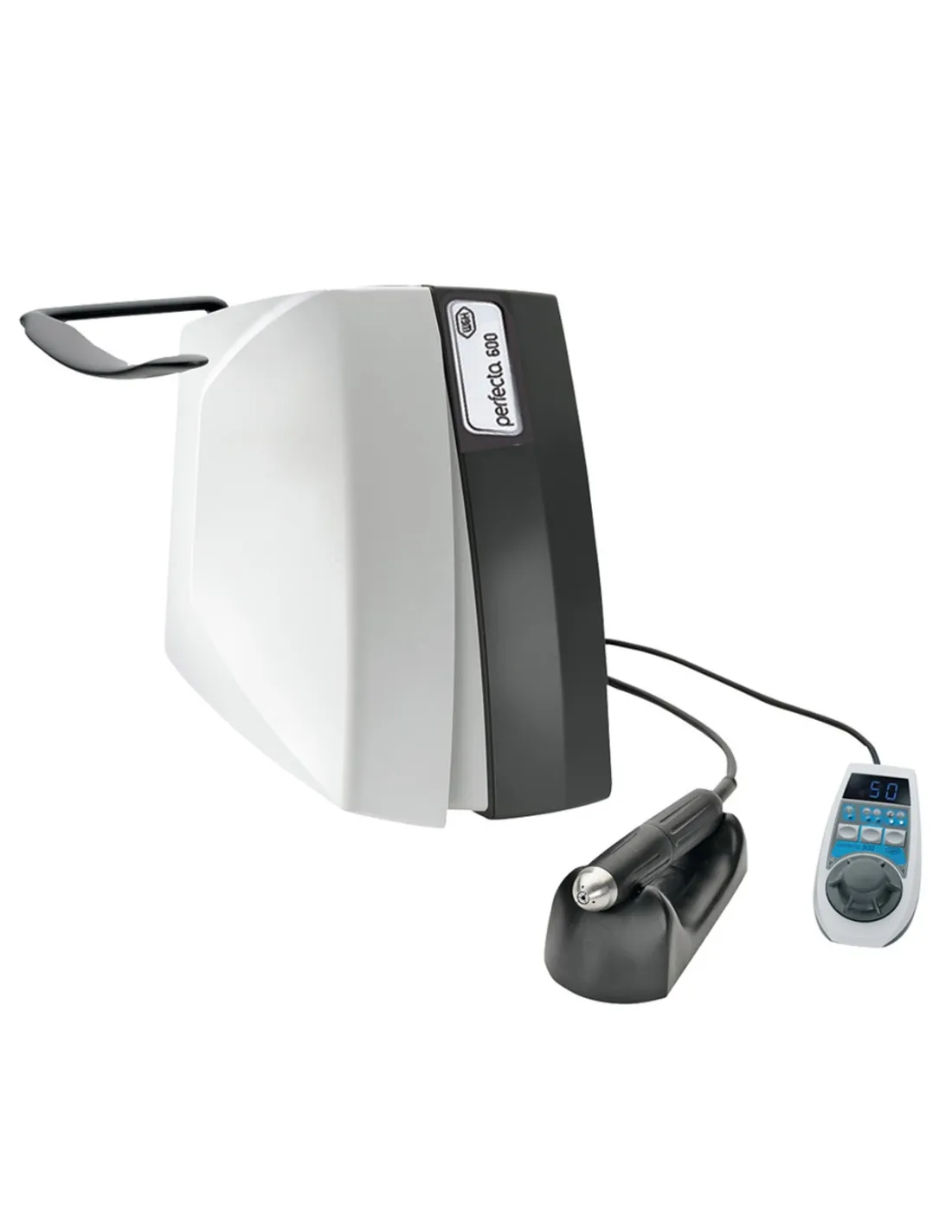 El equipo Perfecta 600 de W&H es un motor sin escobillas para laboratorio dental modelo de rodilla, consola con palanca accionada por la rodilla.