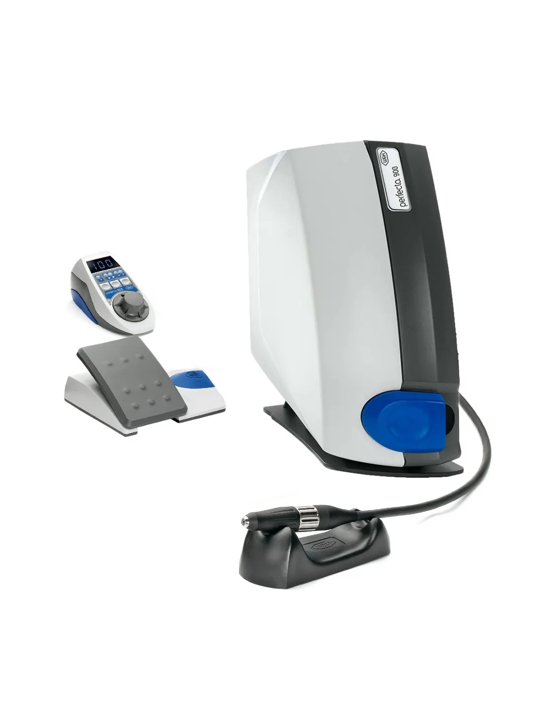 El equipo de sobremesa Perfecta 900 (LA-923TT) cuenta con una pieza de mano LA-9 de alta velocidad, refrigerada por agua, y con función de emisión de aire integrado. Torque 0,7 N cm y velocidades entre 5.000 - 100.000 rpm. Para el uso con herramientas de diámetro: 1,6 mm.