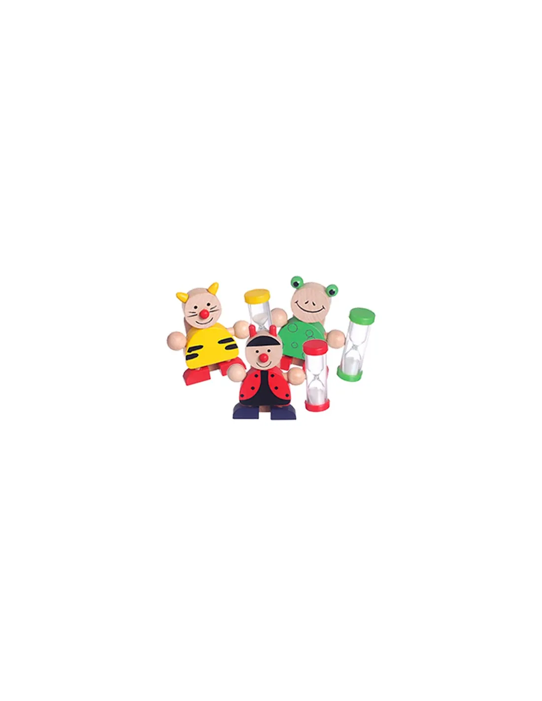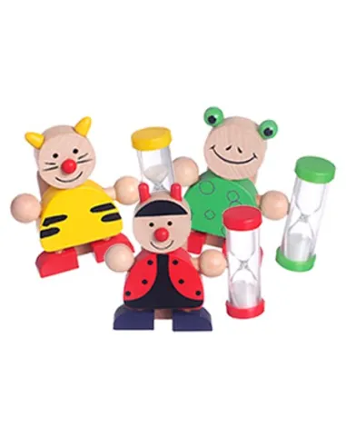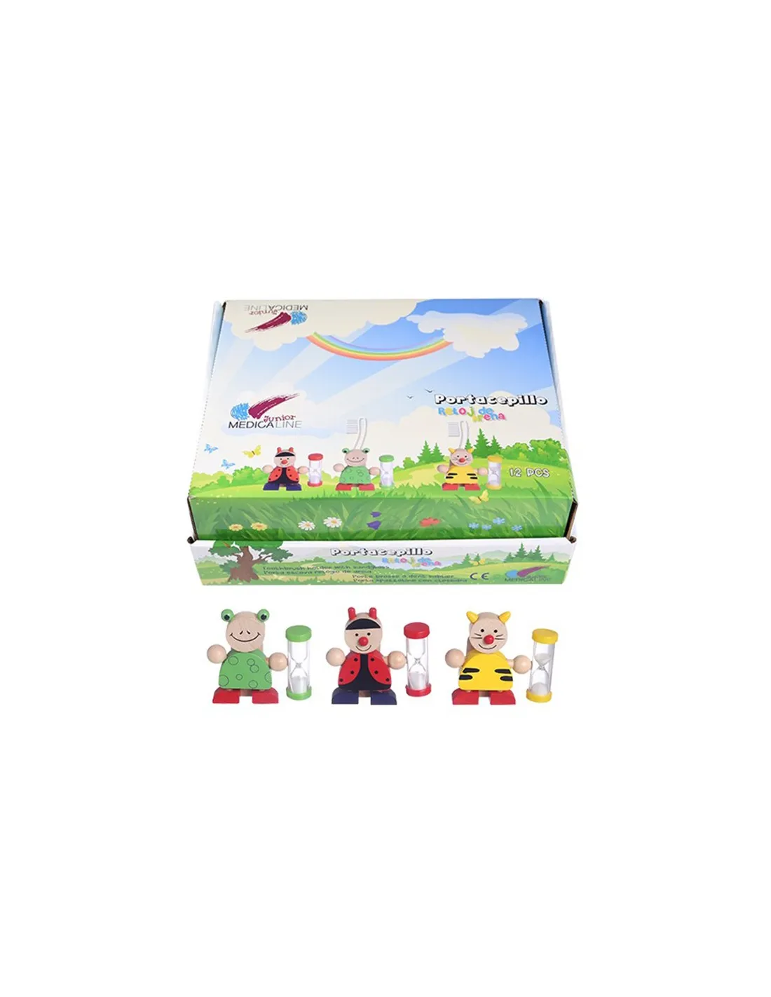 Los Portacepillos Junior de Medicaline son unos divertidos muñequitos de madera donde colocar el cepillo de dientes, que portan un reloj de arena que mide el tiempo necesario durante el que se han de cepillar los dientes.