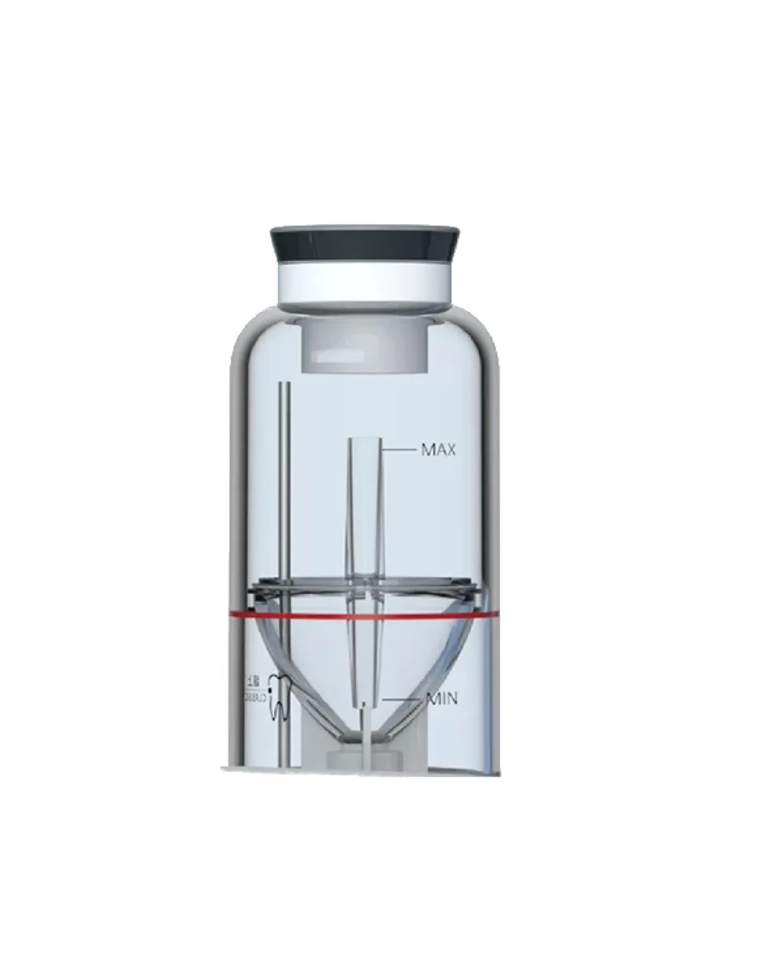 Tanque para el polvo de bicarbonato: completamente transparente con cámara de polvo en forma de embudo.