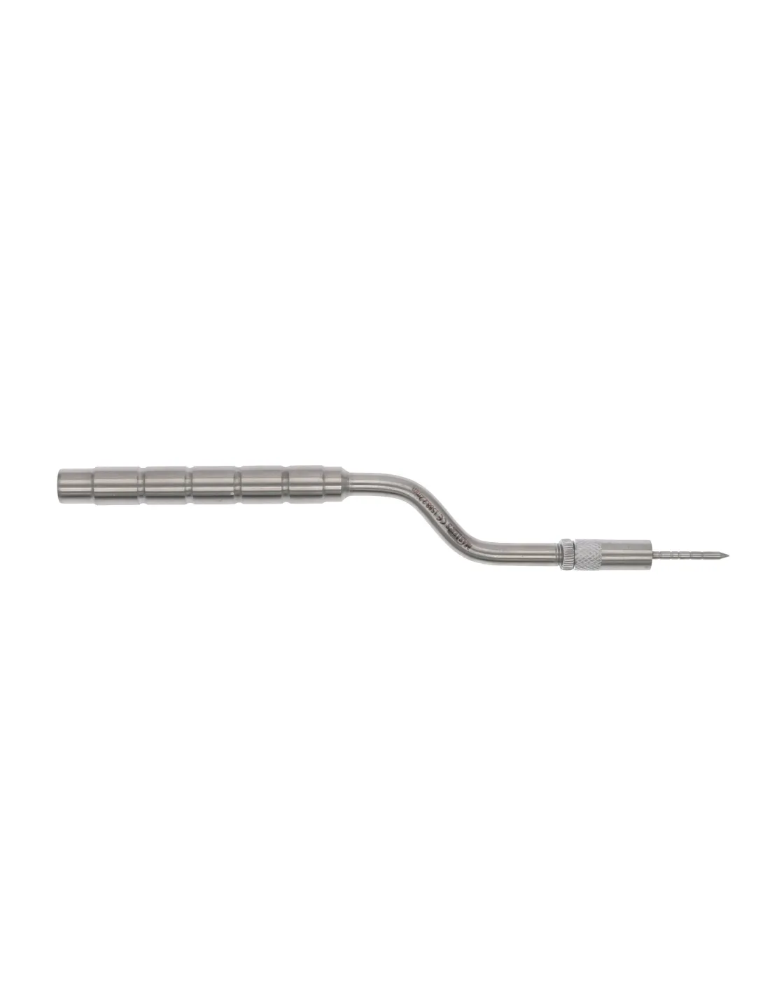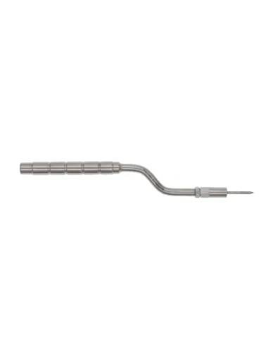 Este osteotomo presenta un diseño angulado y una punta convexa afilada.